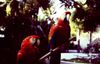 These noisy and playful guys were at the Santa Barbara Zoo. One of them liked to demonstrate his beak prowess -- he could hang from his beak off of a tree branch.